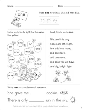 Sight Word Practice Page For One Printable Skills Sheets