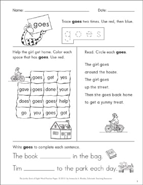 Sight Word Practice Page For Goes Printable Skills Sheets